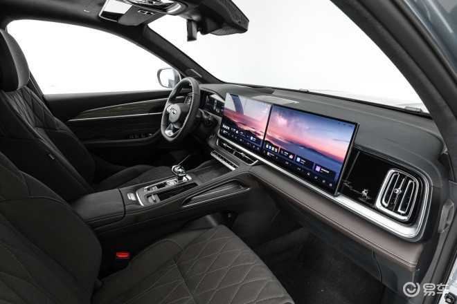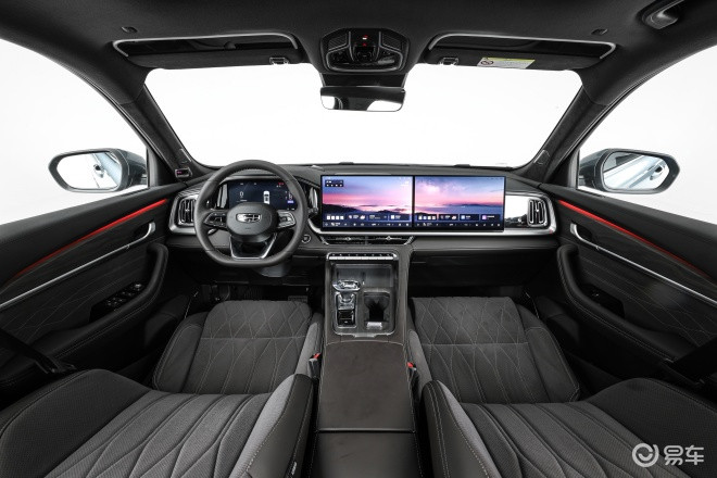 新款星越L东方曜的内饰风格不变,但将中控及副驾双屏都都升级成了14.6英寸的大屏,整个设计更加干练。在细节上除了和新款星瑞东方曜一样的3D镭雕、水晶挡把、琉璃溢彩256色氛围灯之外,新款星越L东方曜还有专属的鸣沙流金环保麂皮内饰。另外新款星越L东方曜同样搭载FlymeAuto车机系统,车机的性能和功能与新款星瑞东方曜没有什么区别,但星越L有四屏智联交互,除了12.3英寸的液晶仪表,以及两块14.6英寸的屏幕之外,还有25.6英寸的HUD抬头显示。